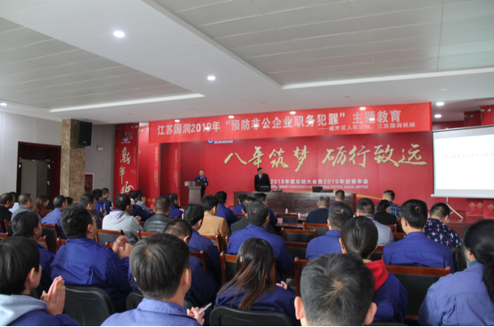 2019年11月15日,由國潤機械組織的“預(yù)防非公企業(yè)職務(wù)犯罪”主題教育講座,在江蘇國潤機械制造有限公司多功能報告廳舉行。 徐州市經(jīng)開區(qū)人民法院院長劉偉、執(zhí)行局局長謝龍…...